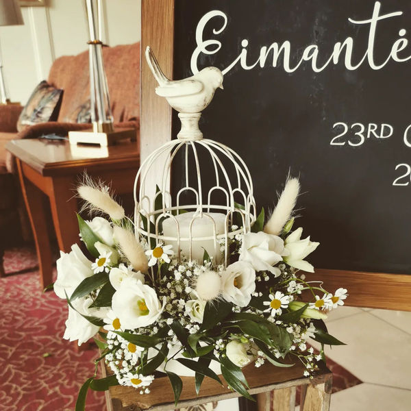 Aisle Decor: Lanterns, Birdcages, gold terrariums, glass cylinders with candles, trailing greenery, petals & candles, All items can be decorated with fresh flowers, artificial flowers or whatever you have in mind!